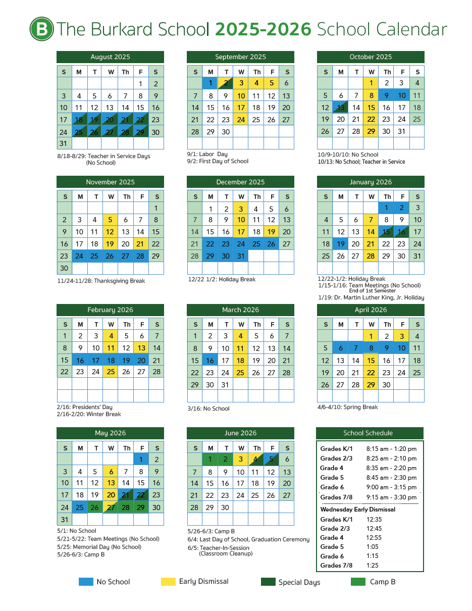 The Burkard School Academic Calendar